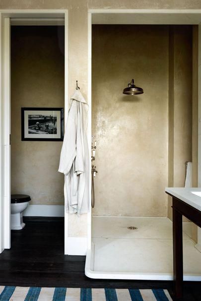 The bright copper color adds some charm and is reused on the wall lights and sink hardware throughout the bathroom. clever!